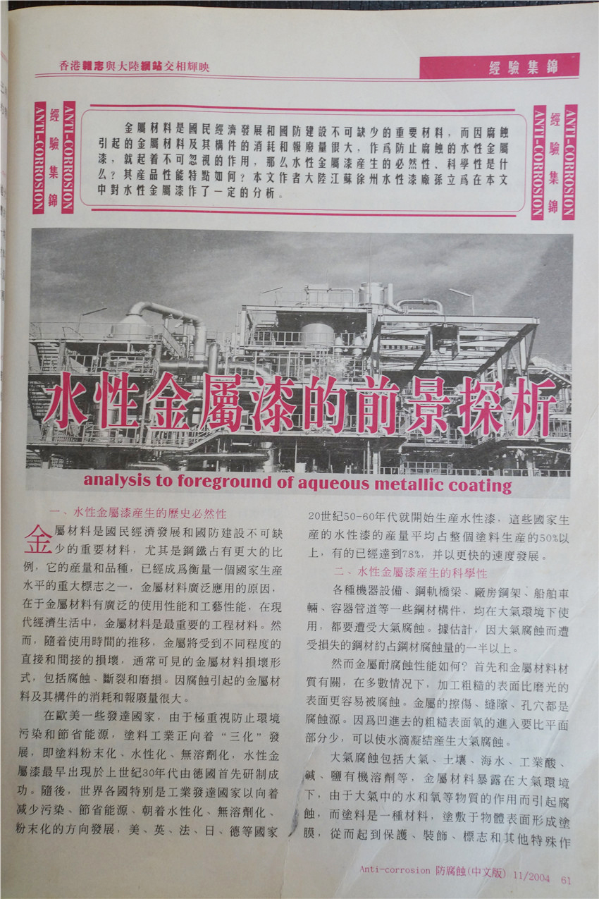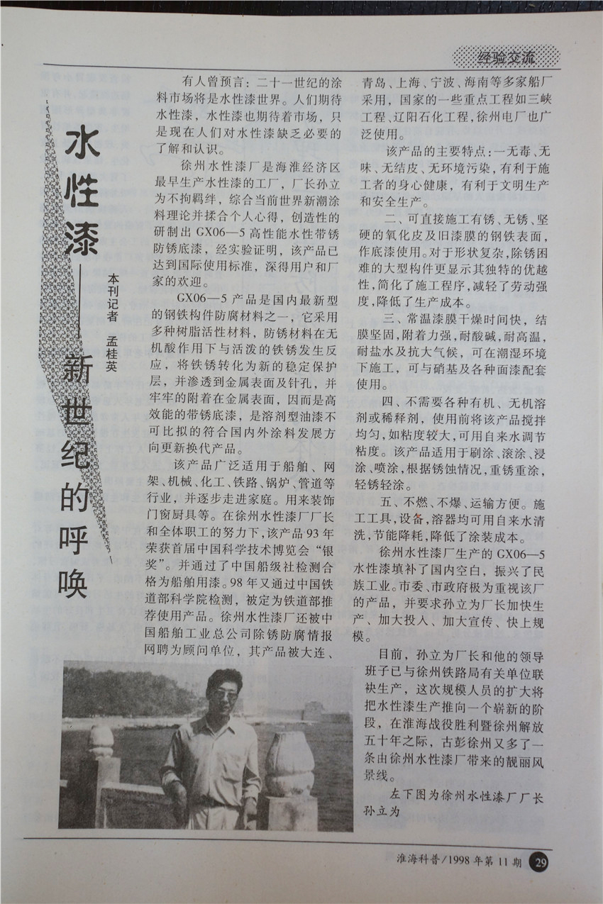 徐州市水性漆厂成立于1990年,产品自主研发填补国内水性工业空白。徐州市三为水性漆科技有限公司与中国矿业大学联合成立水性漆研发中心,从韩国尚庆大学引进国际纳米学者博士后姜继森教授为我公司技术总经理,专注水性纳米应用。三十余年来硕果累累,先后承接两 次 国 家 级 星火计划,中小企业技术创新基金,多项国家发明专利授权并在国家专利局“国际专利博览会”国际专利博览会中荣获创新奖与金奖,全国军民融合企业,《CCTV工匠精神》企业,国家生产力促进中心评为中国好技术,获“中国节能环保创业应用大赛”创新应用奖,中国企业诚信经营示范单位,江苏省民营科技企业,中船重工涂装专业委员会成员,《中国修船》编委,多次在 国 家 级 期刊发布学术论文,通过中国船级社检测,通过中国铁道部科学院检测。?